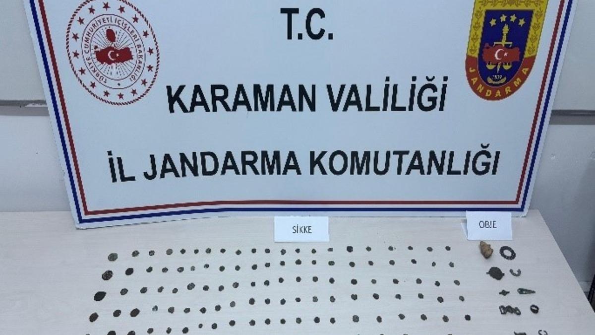 Karaman’da jandarmanın yaptığı uygulamalarda 148 adet tarihi sikke ile uyuşturucu madde ele geçirilirken, aranan 10 kişi tutuklandı.