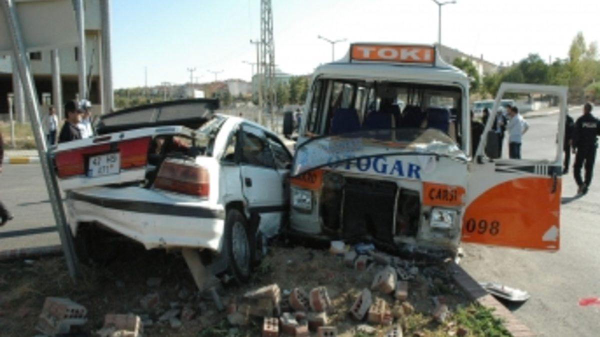 Karaman'da hat minibüsü ile otomobilin çarpışması sonucu 9 kişi yaralandı.
