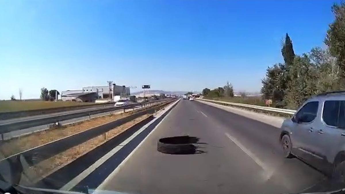 Olay, Karacabey Bursa yolu üzerinde meydana geldi. Anayolda sol şeritte ilerleyen bir araç, önündeki otomobilin ani manevra yapmasıyla fark ettiği kamyon lastiğine çarptı. Meydana gelen kazada sürücü kontrolünü zor topladı. Araçta ağır hasar meydana geldi. Kazanın ardından polis ekiplerine haber veren sürücü, önünde seyreden sürücünün de kendisini ikaz etmediğini söyledi. Görgü tanıkları kamyonlarda ve tırlarda kaplama lastiğe izin verilmemesi gerektiğini, bu tür kazaların karayollarında sıklıkla yaşandığını dile getirdiler. Kazayla ilgili inceleme başlatıldı.