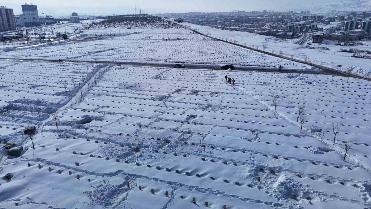Sivas’ta günlerdir aralıklarla etkisini sürdüren yoğun kar yağışı hayatı olumsuz etkilemeye devam ediyor. Kent genelinde birçok nokta beyaz örtüyle kaplanırken, şehrin en büyük mezarlıklarından biri olan Yukarı Tekke Mezarlığı da kar altında kaldı. Yaklaşık 100 bin mezarın bulunduğu mezarlık alanı tamamen beyaza bürünürken, mezar taşları da kara gömüldü. Bazı vatandaşlar mezar taşları karlı örtüldüğü için yakınlarının mezarlarını bulmakta zorlandı.