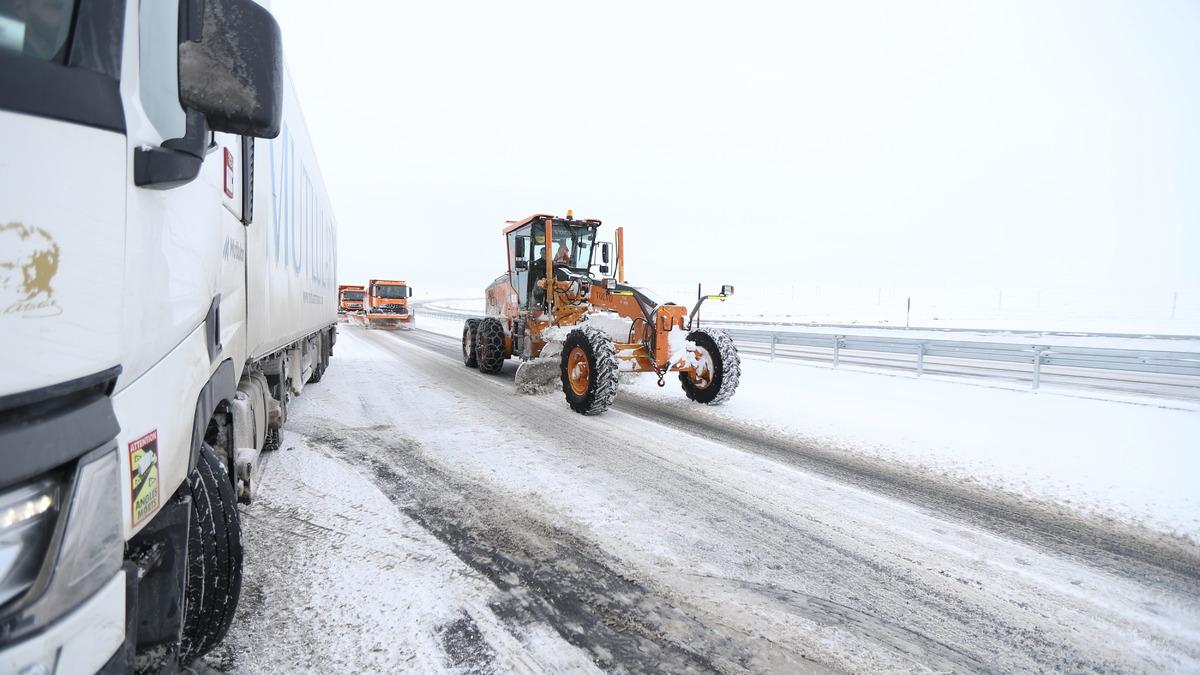 Kars-Digor kara yolunda bazı tırlar yolda kaldı.