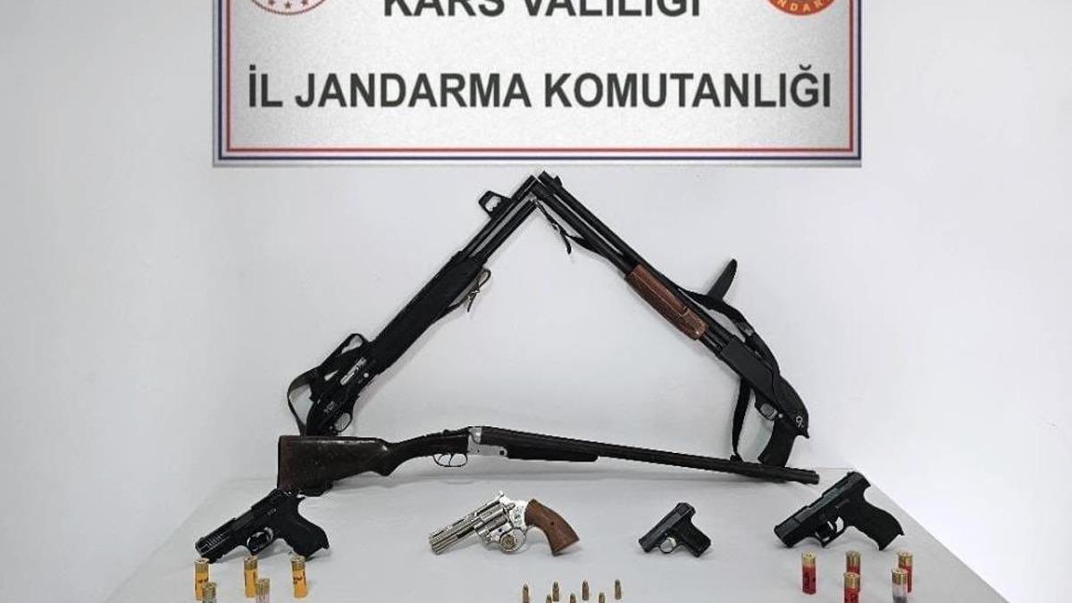 Kars İl Jandarma Komutanlığı’nca, Cumhuriyet Başsavcılığı koordinesinde, Kars il merkez sınırları içerisinde ikamet eden 4 kişinin ikametgahlarına operasyon düzenlendi. Düzenlenen operasyonda yapılan adli arama sonucunda 1 9 mm çapında ruhsatsız tabanca,3 av tüfeği, 3 kurusıkı tabanca, 3 şarjör, 9 tabanca mühimmatı ve 11 av tüfeği fişeği ele geçirilerek muhafaza altına alındı. Olayla ilgili olarak şüpheli 4 kişi hakkında adli işlem yapıldı, alınan ifadelerinin ardından serbest bırakılan 4 kişiye 2521 ve 5729 Sayılı Kanunlara Muhalefet suçu kapsamında idari para cezası uygulandı. Konuyla ilgili olarak Kars Valiliği’nden yapılan yazılı açıklamada, "İl Jandarma Komutanlığımız, halkımızın can ve mal güvenliğini, emniyet ve asayişi sağlamak maksadıyla mesai mefhumu gözetmeksizin çalışarak vatandaşlarımıza hizmet etmeye devam etmektedir" denildi.