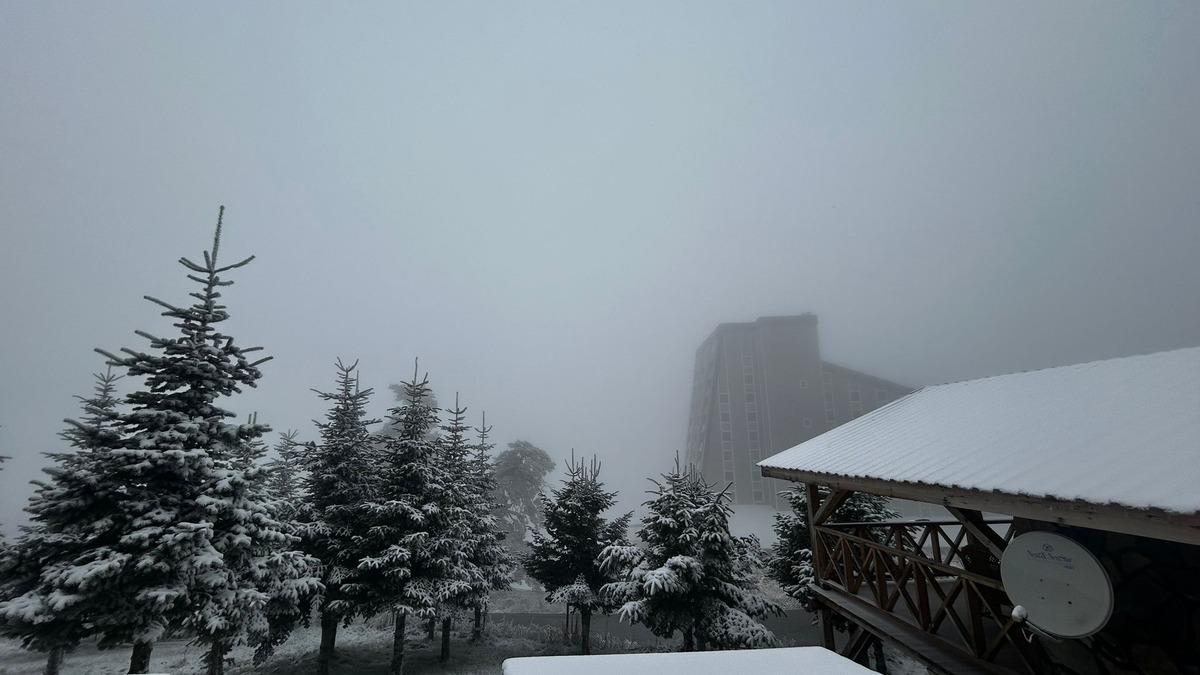 Köroğlu Dağları'nda yer alan 2 bin 200 metre rakımlı Kartalkaya’da etkili olan sağanak, gece saatlerinde hava sıcaklığının düşmesiyle yerini kar yağışına bıraktı.