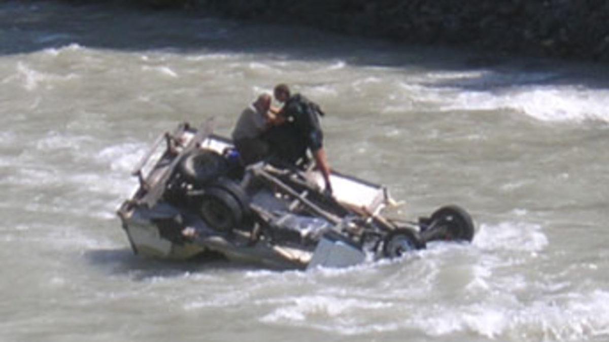 TOKAT (İHA) - Tokat'ın Reşadiye ilçesi yakınlarında Kelkit Çayı'na uçan kapalı kasa kamyonet üzerinde mahsur kalan şahıs 4 saat süren operasyon sonucu kurtarılırken, araçta bir kişinin daha bulunduğu öğrenildi.