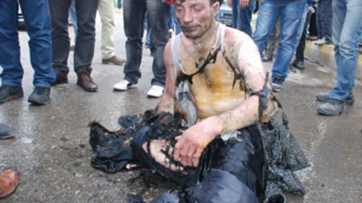Vücudunu kaplayan alevlerle birlikte koşmaya başlayan Burhan A. bir süre sonra yere düştü. Olayı gören çevredeki vatandaşlar, ceket ve paltolarıyla olaya müdahale etmeye çalıştı. Bazı vatandaşlar da iş yerlerinden kovalarla su getirerek yanan şahsın üzerine döktü. Ağır yaralanan Burhan A., ambulansla Atatürk Devlet Hastanesi'ne kaldırıldı. (İHA)