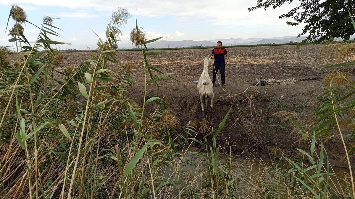 Kırıkhan ilçesi Karadurmuşlu Mahallesi’nde sulama kanalına düşen eşeği fark eden vatandaşlar, hayvanı kendi imkanlarıyla kurtaramayınca durumu itfaiye ekiplerine bildirdi. İhbar üzerine bölgeye gelen Hatay Büyükşehir Belediyesi itfaiye ekipleri, eşeği titiz çalışmayla sağlıklı şekilde kurtardı. Kurtarılan eşek, sahibine teslim edildi.