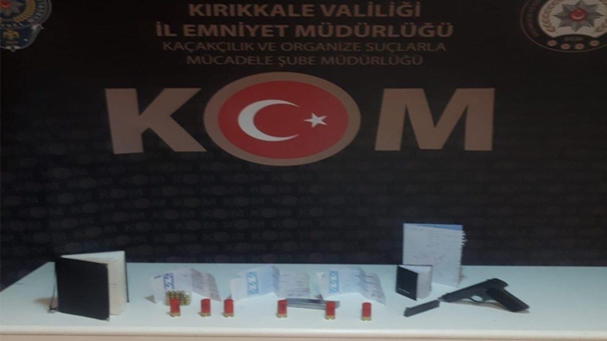 Emniyet Genel Müdürlüğü KOM Daire Başkanlığı ve Kırıkkale Cumhuriyet Başsavcılığı koordinesinde İl Emniyet Müdürlüğü Kaçakçılık ve Organize Suçlarla Mücadele Şubesi ekipleri, kentte tefecilik yaptığı tespit edilen A.K., M.K. ve G.K. isimli şahısların 5 ayrı adresine operasyon düzenledi. Aramalarda 3 adet senet, çok sayıda alacak/verecek bilgilerinin bulunduğu dokümanlar, şüphelilere ait dijital materyaller, 1 adet tabanca ve 2 adet şarjör, 32 adet tabanca fişeği, 6 adet dolu av tüfeği kartuşu ele geçirildi.