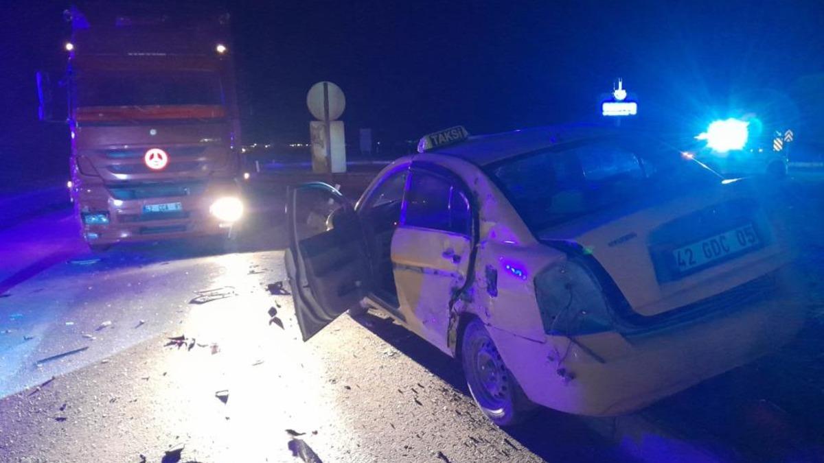 Kaza, Karapınar-Konya yolu 3. kilometresinde meydana geldi. Edinilen bilgiye göre, C.Ç. yönetimindeki 42 CCA 81 plakalı tır, D.A. idaresindeki 42 GDC 05 plakalı ticari taksiyle çarpıştı.