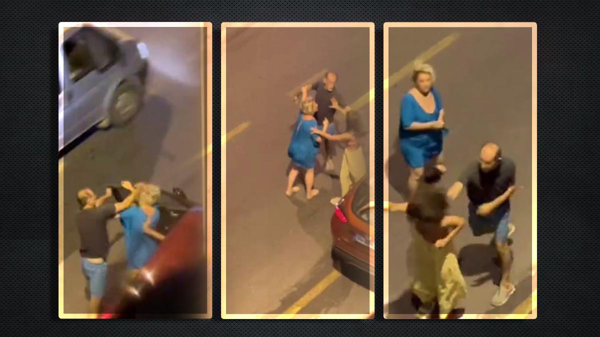 Bunun üzerine erkek şahıs da kadınlara karşılık verdi. Bu sırada erkek şahıs otomobilin sürücü koltuğunda oturan kadınla da tartıştı. Otomobilin kapısını açmak isterken kadın sürücü şahsın elini otomobil kapısı ile sıkıştırdı. Bir müddet süren 2 kadın bir erkek kavgası kameralara bu şekilde yansırken, kavgaya hiç kimsenin müdahale etmemesi dikkat çekti. Uzun süre kavga edip birbirlerine darp eden kadınların da erkek şahsın da birbirlerinden şikayetçi olmadıkları öğrenildi. Kavgadan geriye bu görüntüler kaldı.