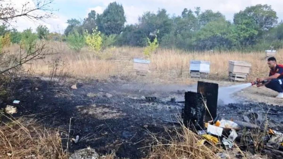 Yangın mahallinde bulunan arı kovanları ve piknik tüpünün kime ait olduğu araştırılıyor.