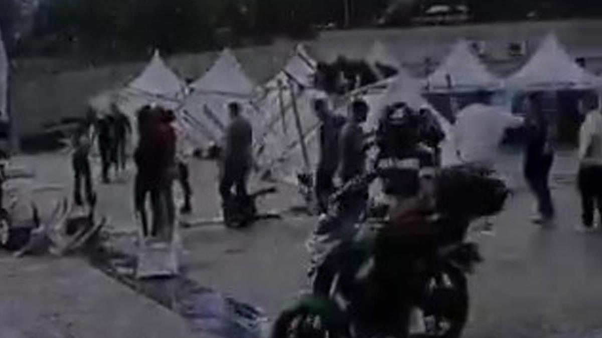 Bir anda bastıran sağanak ve aşırı rüzgar bir çok çadırı devirdi. O anlar ise cep telefonuyla görüntülendi.