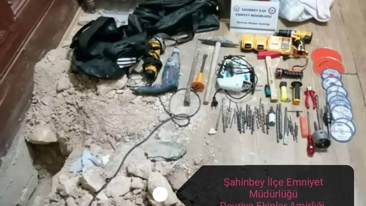 Gaziantep’te, bir kuyumcunun tavanını hırsızlık amacıyla delmeye çalışan şüpheli şahıs, hilti, kazma gibi delici ve kırıcı aletler ile suçüstü yakalandı. Yakalandıktan sonra polis ekiplerine sahte kimlik ibraz eden şüpheli şahsın 5 yıl 6 ay hapis cezası olduğu tespit edildi.