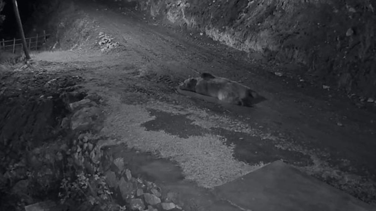 Araklı ilçe merkezinde esnaflık yapan Taylan Çebi komşularından aldığı haberle kamyonetle evine çıkarken, evini girip karnını doyurduktan sonra evin önündeki çamur birikintisinin içinde yatan ayıyı gördü.