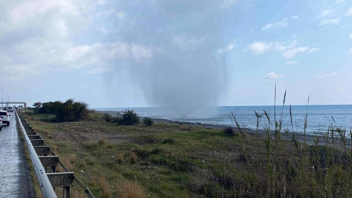Antalya’nın Manavgat ilçesinde etkili olan kısa süreli sağanak yağış ve dolu sırasında Çenger sahilinde hortum çıktı.
