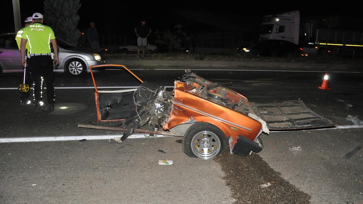 Kamyonete çarpan otomobilin ortadan ikiye bölündüğü görüldü. Olay yerine sağlık ve polis ekipleri sevk edildi.