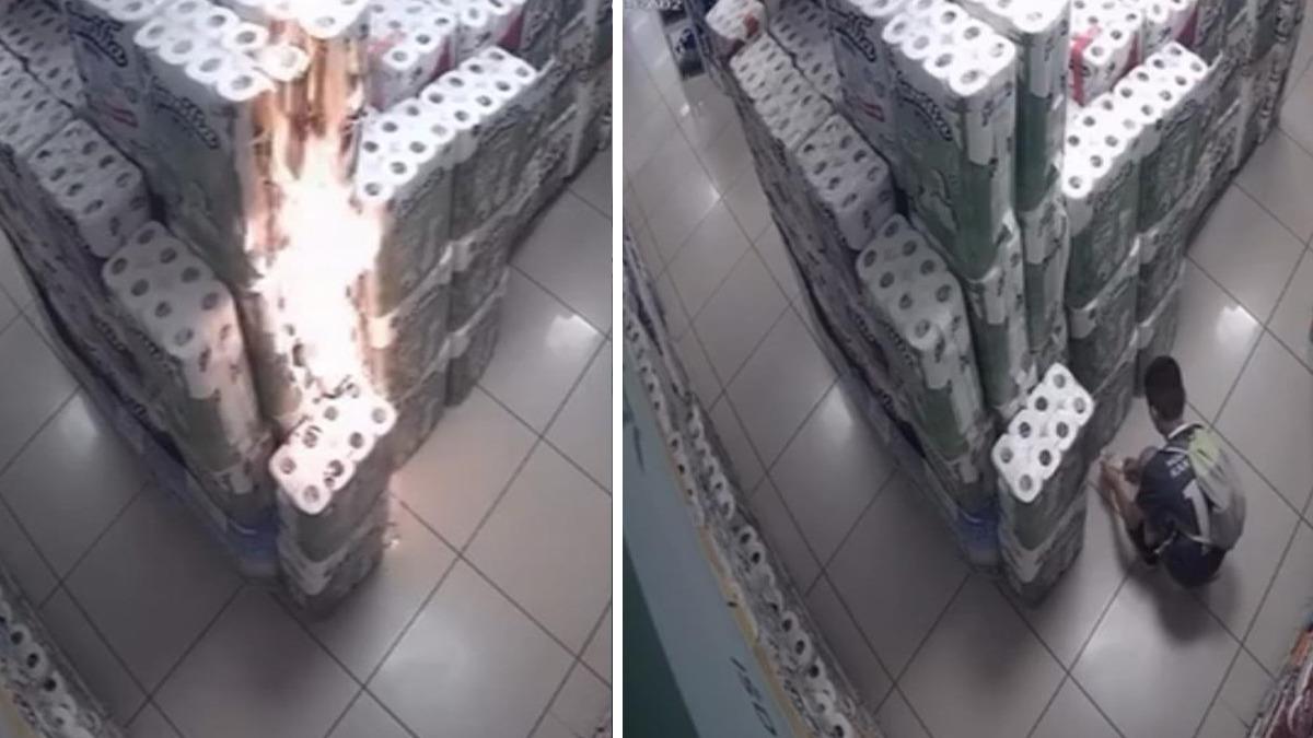 Olay, dün saat 14.30 sıralarında Nilüfer ilçesi Fatih Sultan Mehmet Caddesi üzerinde bulunan zincir marketin bir şubesinde meydana geldi. Markete gelen çocuk, peçetelerin bulunduğu reyondaki bir etiketi kopardı. Çakmakla tutuşturduğu etiketi ürünlerin arasına bırakan çocuk, koşarak marketten uzaklaştı.
