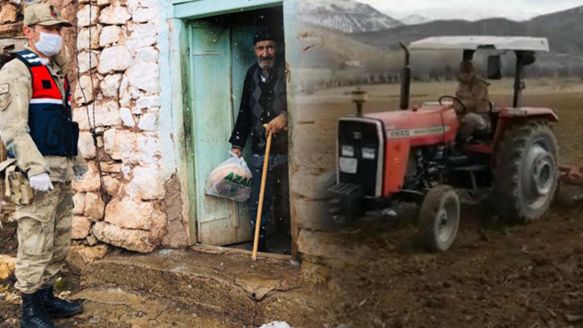 Bu kişiden sağlığı için evden çıkmamasını isteyen jandarma görevlileri, tarlayı kendilerinin sürebileceğini söyledi.