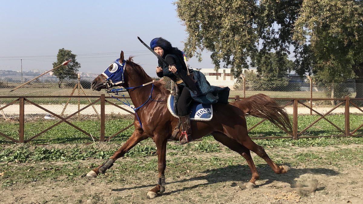 Enver Fatih TIKIR- Muammer İRTEM/ BURSA, (DHA) - BURSA'da binicilik hobisini atlı okçuluk yaparak geliştiren Melike Özpınar (18), kendisi gibi biniciliğe meraklı kızlar ve kadınlar için atlı okçuluk kursu açtı. Özpınar, 10 yaşından 25 yaşına kadar yaklaşık 20 öğrenciye Osmanlı İmparatorluğu'nun en nitelikli savaş sanatlarından biri olan atlı okçuluk eğitimi veriyor.