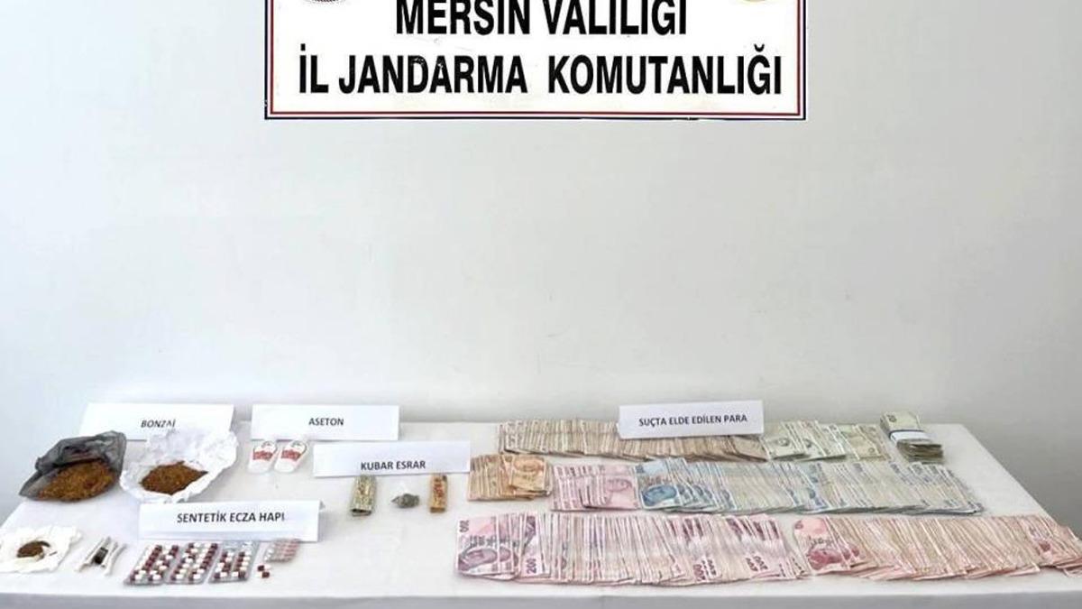Alınan bilgiye göre, İl Jandarma Komutanlığı ekipleri, Silifke ve Tarsus ilçelerinde bazı şüphelilerin uyuşturucu madde ticareti yaptığı belirledi. Şüphelileri takibe alan jandarma ekipleri operasyon düzenledi. Operasyonda 4 şüpheli gözaltına alındı. Yakalanan şüphelilerin araç, ev ve üzerlerinde yapılan aramalarda 100 gram bonzai, 10 gram esrar, 462 sentetik hap, 2 adet 140 ml’lik aseton, 2 uyuşturucu içme aparatı, 2 cep telefonu ve 46 bin 785 TL nakit para ele geçirildi. Jandarmadaki işlemlerin ardından adli makamlara sevk edilen şüphelilerden 1’i tutuklandı, 3'ü ise adli kontrol şartıyla serbest kaldı.