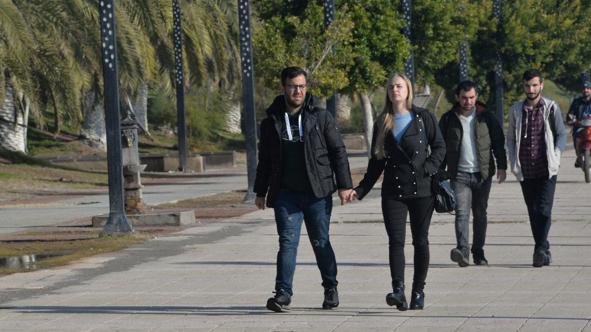 Yüksek kesimleri kara ve yağmura teslim olan Mersin'de kent merkezi, bahardan kalma günler yaşıyor. Hafta sonuna kadar en düşük 5 en yüksek 17 derece sıcaklığın tahmin edildiği kent merkezinde, güneşli havayla birlikte vatandaşlar parklara akın etti. Bazı kişiler ise güneş altında yürüyüş yapmayı tercih etti.