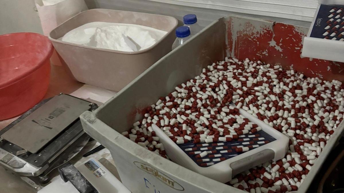 Mersin İl Emniyet Müdürlüğü Narkotik Suçlarla Mücadele Şube Müdürlüğü ile Mezitli İlçe Emniyet Müdürlüğü ekiplerince, uyuşturucu madde ticareti ve kullanımını engellemeye yönelik yürütülen çalışmalar kapsamında Yenişehir ilçesinde bir adreste sentetik ecza hap üretimi yapıldığı bilgisine ulaşıldı. Belirlenen adrese düzenlenen operasyonda, 65 kilo 250 gram sentetik ecza ham maddesi (pregabalin), 45 bin 482 adet doldurulmuş kapsül, 135 bin 100 adet boş kapsül, bin 850 adet ilaç kutusu, 25 gram metamfetamin, 810 adet beyaz renkli hap kutusu, 420 adet kapak, 2 adet ilaç basım makinesi, 1 adet mikser ile 708 blister halinde 9 bin 912 adet sentetik ecza ele geçirildi.