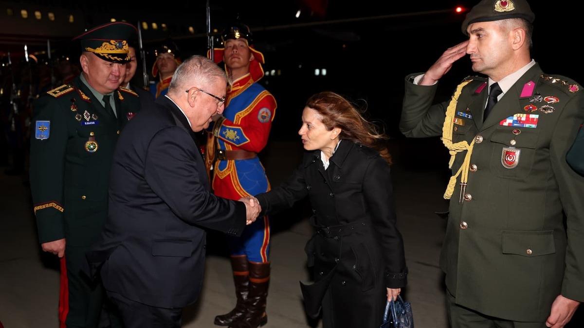 Bakan Güler, Ulan Batur'a gelişinde törenle karşılandı. (AA)
