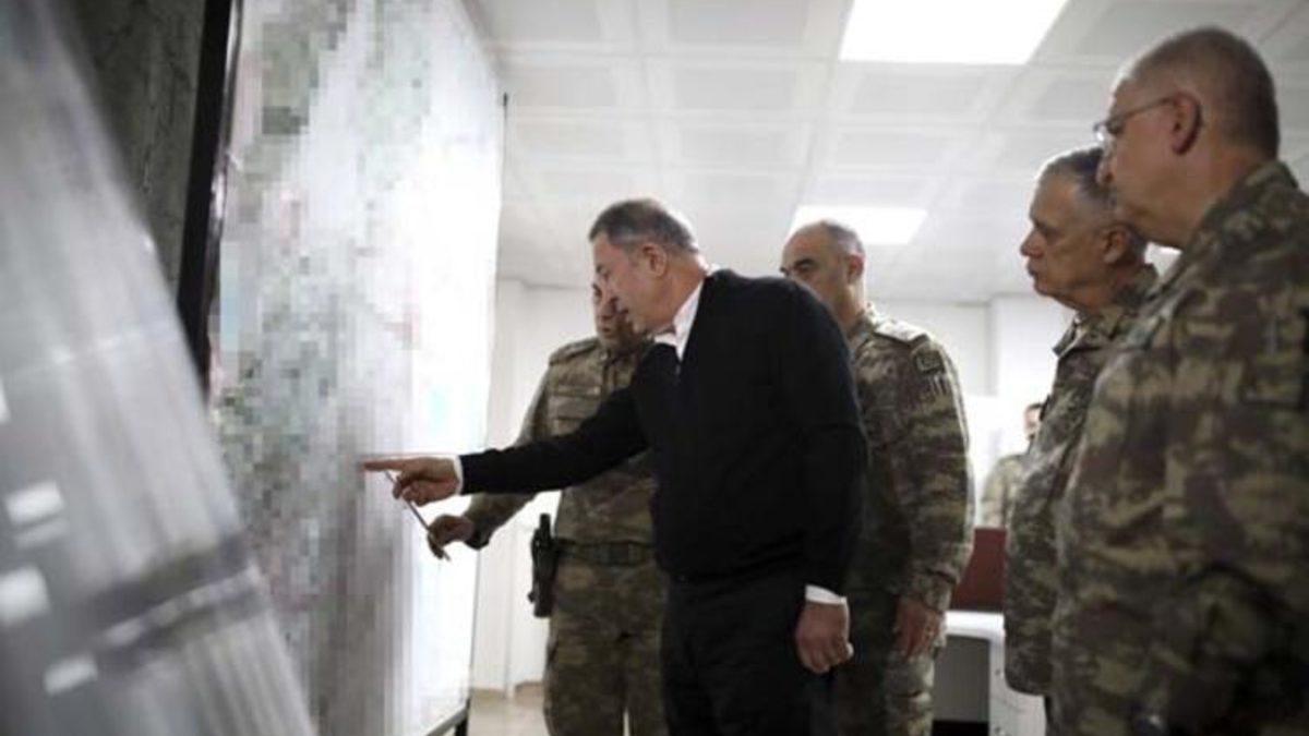 Akar, Orgeneral Güler, Kara Kuvvetleri Komutanı Orgeneral Ümit Dündar ve Hava Kuvvetleri Komutanı Orgeneral Hasan Küçükakyüz ile Suriye sınırının sıfır noktasındaki birlikleri ziyaret ederek, harekata ilişkin son bilgileri yerinde alıyor.