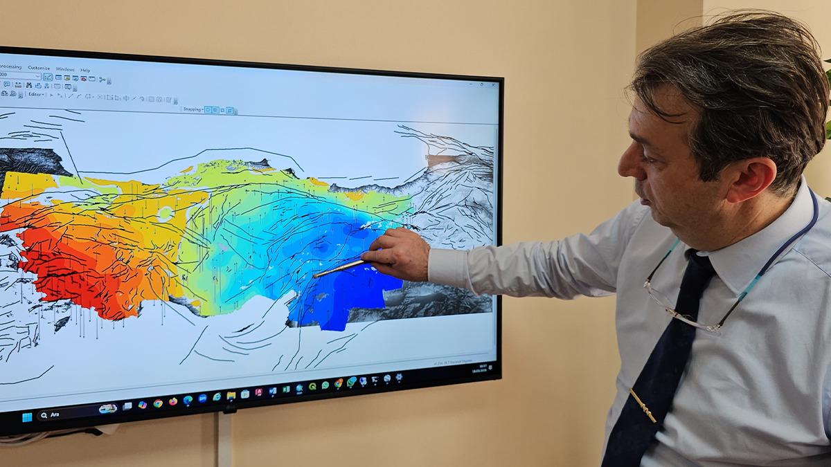 Türkiye'nin doğusunun kuzeye, batısının ise güneye hareket ettiğini belirten Kutoğlu, "Uzun yıllardır uydu radar verisiyle Türkiye'nin yer kabuğu hareketlerini inceliyoruz. Bu yer kabuğu hareketlerini daha derin bir analize tabi tuttuğumuzda, Ankara'nın doğusunda kalan kısmının kuzeye doğru hareket ettiğini, batısında kalan kısmının da güneye doğru hareket etmiş olduğunu tespit ettik. Tabii bunun neticesinde de Antalya'dan yukarıya doğru, Karadeniz Ereğli'ye doğru bir beyazla görmüş olduğumuz bir sıfır hattının olduğunu tespit ettik. Bu sıfır hattının doğusu yukarıya, batısı da aşağıya doğru hareket ettiği için sıfır hattı etrafında bir gerilim bölgesi meydana geliyor. Buna biz Orta Anadolu geçiş zonu adını verdik yaptığımız yayında. Bu Orta Anadolu geçiş zonu etrafında geçmiş yıllarda irili ufaklı depremler meydana gelmiş. Bu da bu hattın varlığını doğrular nitelikte. Bu durum bize şunu gösteriyor: Bu gerilim devam ettiği sürece, bu şekilde devam ettiği sürece, Türkiye'nin doğusu, Ankara'nın doğuda kalan kısmı yukarıya, batısında kalan kısmı aşağıya devam edecek ve bu milyonlarca yıllık bir süreç içerisinde bu miktar kilometrelere ulaşabilir ve neticesinde Anadolu'nun ortadan ikiye ayrılması söz konusu olabilir. İlerleyen zamanda, yüz binlerce yıl, milyonlarca yıldan bahsediyoruz, büyük gerilimler birikerek burada büyük boyutta depremlerin de meydana gelmesi söz konusu olabilir" ifadelerini kullandı.