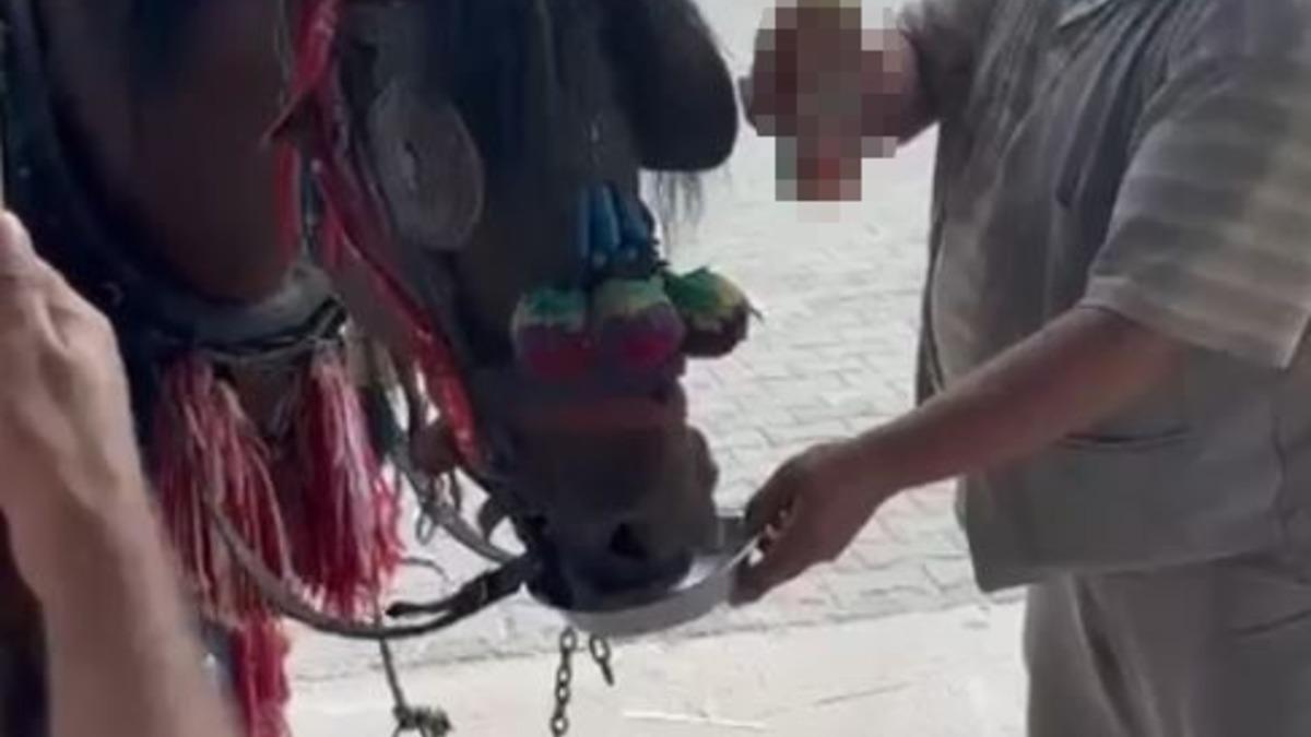 Tepki çeken olayın görüntüleri kameralara bu şekilde yansırken, zavallı atın alkol bağımlısı yapıldığı görüldü.