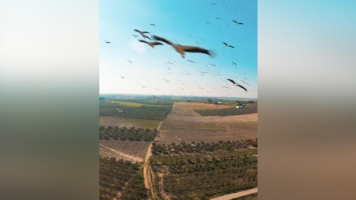 23 yaşındaki İspanyol Andrés Aguilera Morillas drone'unu yüzlerce leyleğin arasında uçurdu. Oldukça etkileyici anların kaydedildiği görüntüler sosyal medyada büyük beğeni topladı.