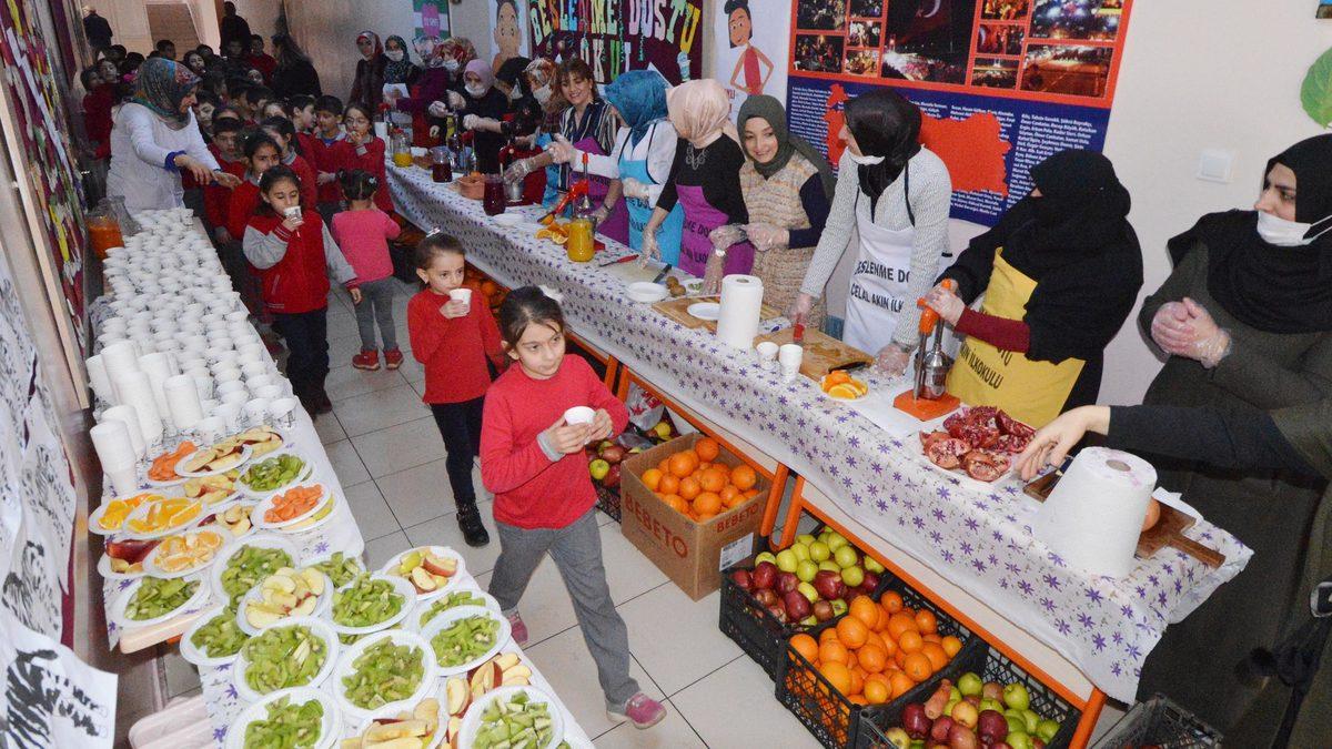 Okulun öğretmen velilerinden Ezel Kocatürk ise, "Bu etkinliği çocuklarımız için zevkle yapıyoruz. Çocuklarımıza hazır meyve suyu yerine taze sıkılmış meyve suyu içiriyoruz. Gün boyu çalıştık ama yorulmadık. Yeter ki çocuklarımız doğru beslenmeyi öğrensin" dedi.