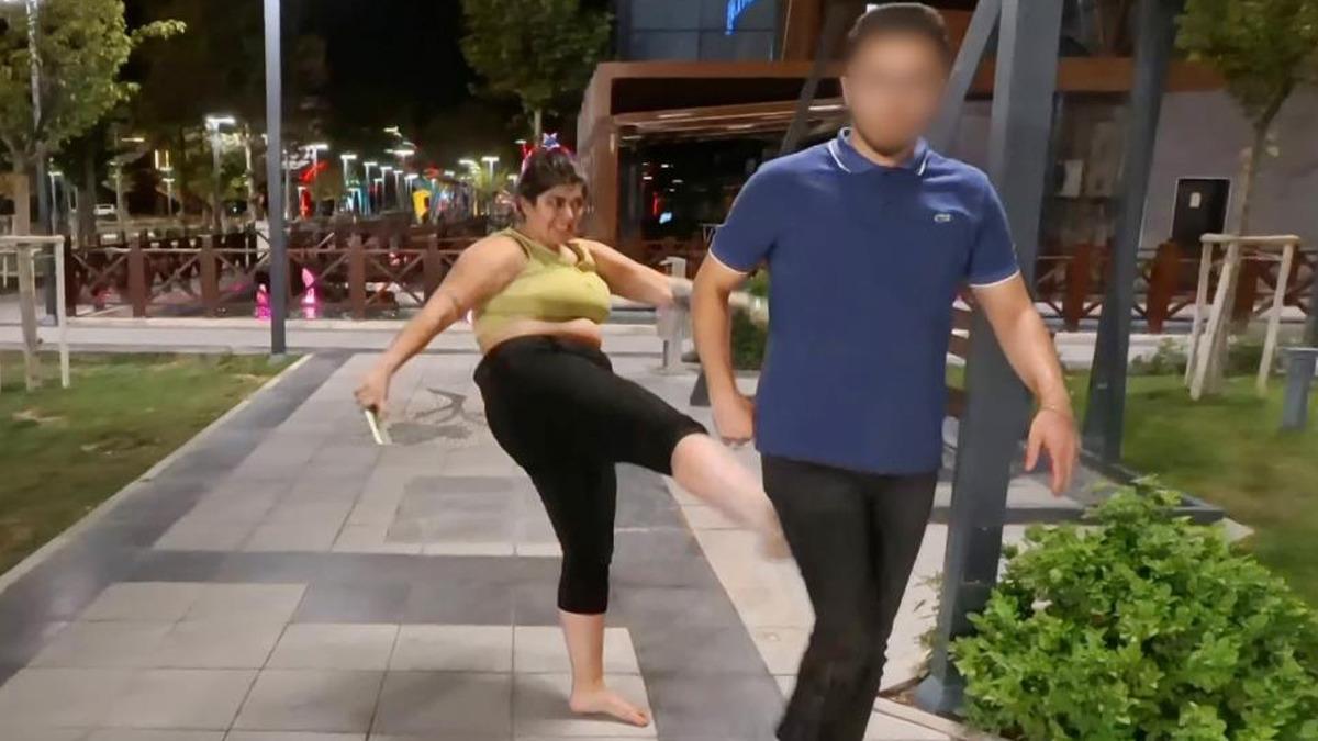 Çığlık seslerini duyan kimi vatandaşlar 112 Acil Çağrı Merkezini arayarak ihbarda bulunurken, kimisi de kadının çığlığına kayıtsız kalmayarak yanına koştu. Yardım için kadının yanına giden bir genç neye uğradığını şaşırdı. Yardım etmek için gelen genci itip kakan ve diğer yardıma gelenlere de tehditler savuran kadın, genci tekme atarak darbetti.