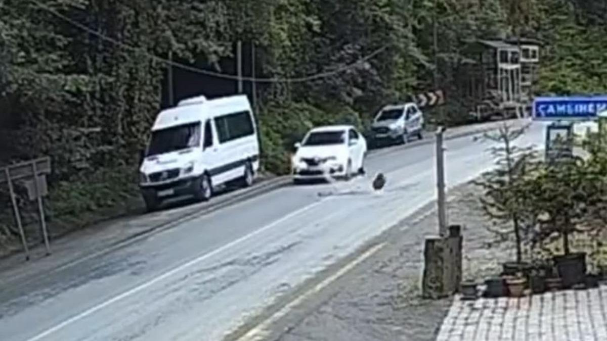 Olay, Çamlıhemşin ilçesinde Ayder yolu üzerinde meydana geldi. Yamaçtan kopan büyük bir kaya parçası otobanın ortasına düştü. O sırada bölgede seyir halinde otomobilin sadece birkaç metre önüne düşen kaya sürücüye korku dolu anlar yaşattı. O anlar ise anbean bölgede bulunan bir işletmenin güvenlik kamerasına yansıdı.