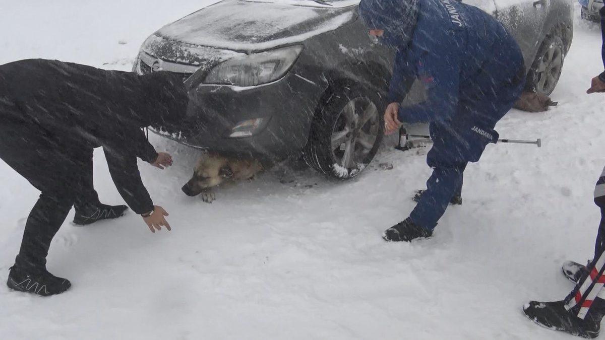 Berktuğ ÖNCÜ- Serkan AKKUŞ/BURSA, (DHA)- BURSA-Uludag karayolunda otomobilin altında kalan 'Paşa' isimli sokak köpeği, jandarma tarafından kurtarıldı. Yaralanan köpek, hastanede tedaviye alındı.