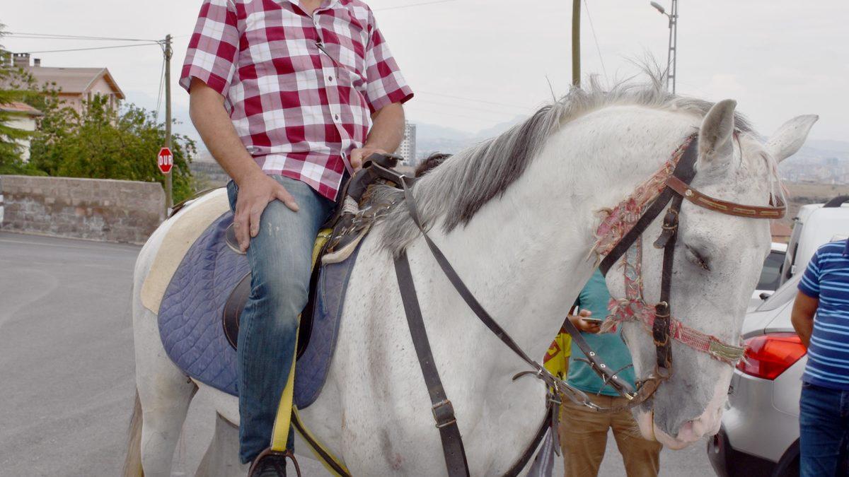 Oktay ENSARİ- Olcay DÜZGÜN/KAYSERİ, (DHA)- KAYSERİ'de Mustafa Yurtlu (42) Melikgazi ilçesi Tavlusun Mahallesi'ndeki oy kullanacağı ilköğretim okuluna atla geldi.