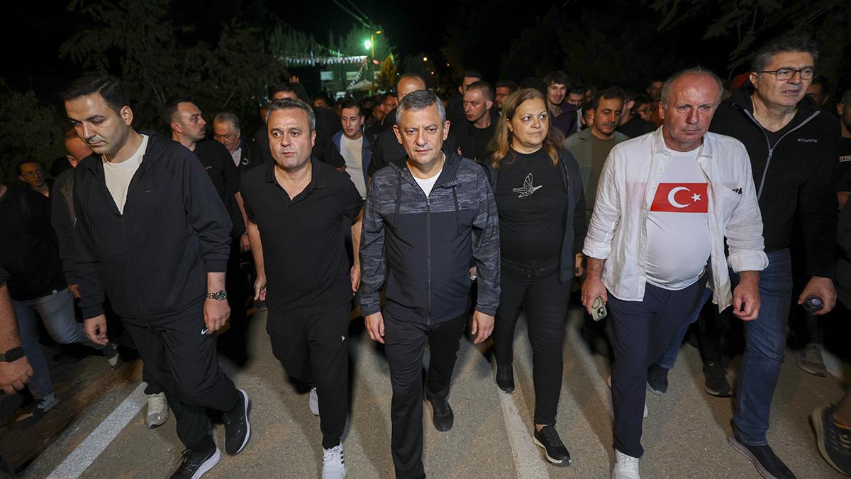 Ardından Özel, ilçeye bağlı Çakırözü köyünden Kocatepe'ye kadar yürüdü. Özel'e CHP'ye yeniden katılan Muharrem İnce ve partililer eşlik etti. 4 saatlik yürüyüşün ardından gün doğumunu bekleyip fotoğraf çektirdi.