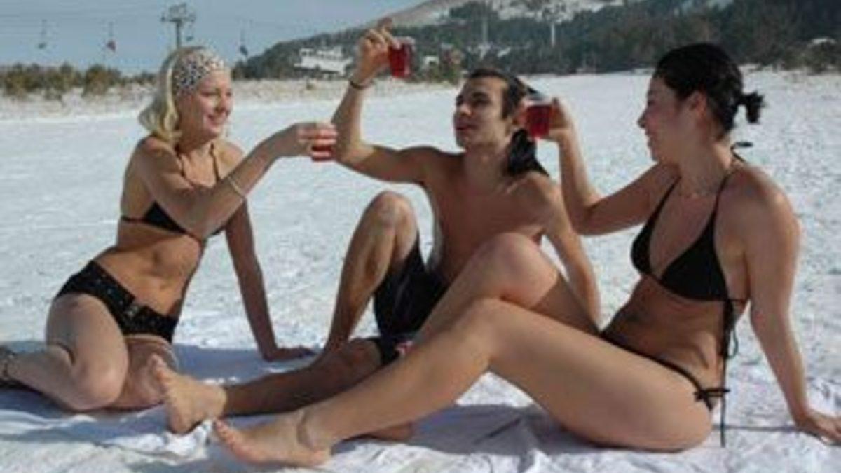 Hava sıcaklığının sıfırın altında eksi 10 dereceye kadar düştüğü Palandöken'in karlı doruklarında bikini ve şortlarını giyip kara uzanarak güneşlenen Türk ve Rus turistler, kışın bronzlaşmanın keyfini çıkardı. Deniz seviyesinden 2 bin 500 metre yükseklikte Palan Otel'in ormanlık içerisindeki kayak pistine uzanarak güneşin keyfini çıkaran Rus uyruklu Elana Artemenko (24) Zeynep Özden (26) ve İlhan Körpe (21) daha sonra kartopu oynadı. Ülkesinde psikolog olarak çalışan Artemenko'nun karda yaptığı akrobasi hareketleri görenleri şaşırttı.