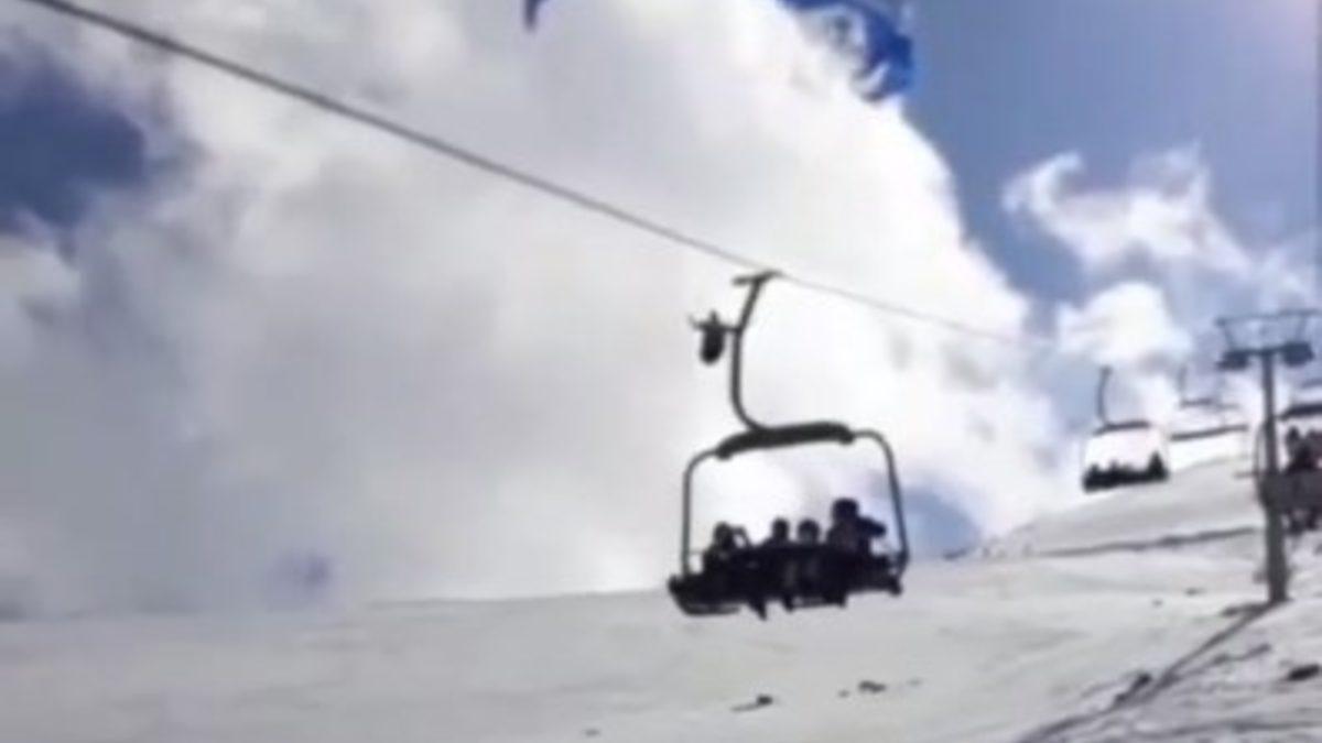 Bingöl’de bir yamaç paraşütçüsü kayak merkezindeki telesiyeje takıldı. O anlar cep telefonu kamerasına saniye saniye yansıdı.