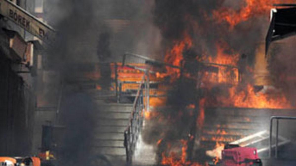 Öte yandan atılan molotof kokteyllerine hedef olan börek arabasının yandığı görüldü.
