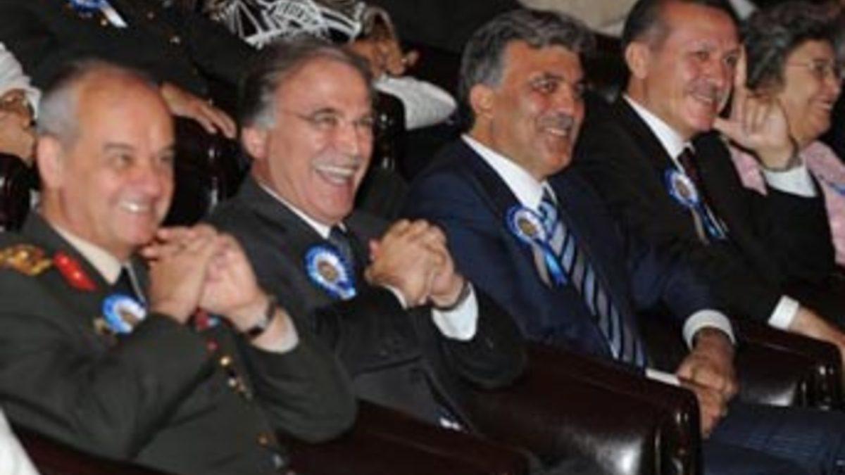 Protokolde bulunan Cumhurbaşkanı Abdullah Gül, TBMM Başkanı Mehmet Ali Şahin, Başbakan Recep Tayyip Erdoğan ve Genelkurmay Başkanı Org. İlker Başbuğ ard arda gelen esprilerle kahkahalara boğuldular.