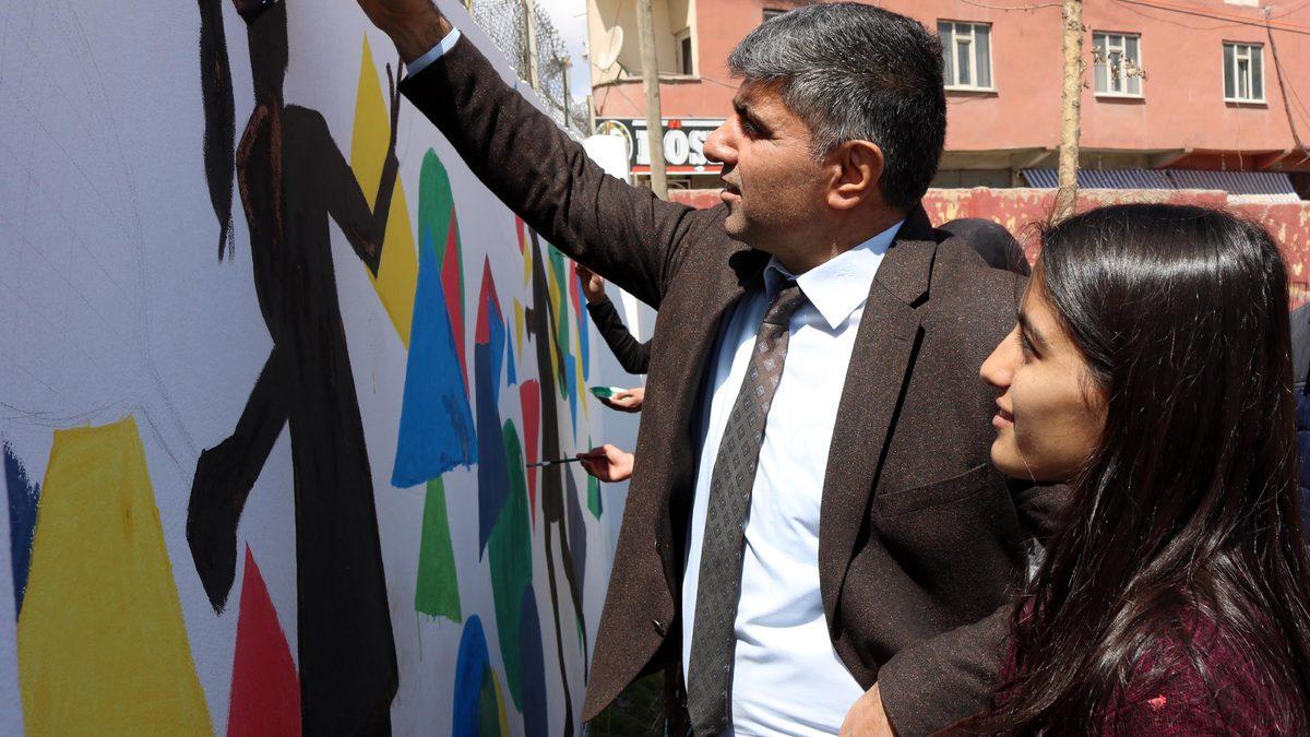 Selahattin KAÇURU / DOĞUBAYAZIT (Ağrı), (DHA) - AĞRI'nın Doğubayazıt ilçesinde lise öğrencileri resim derslerini ilçedeki cadde ve sokakaların duvarlarını boyayarak uygulamalı işliyor. Resim öğretmeni Cem Doğan, resim dersini sevdirmek için böyle bir uygulama başlattıklarını söylüyor.