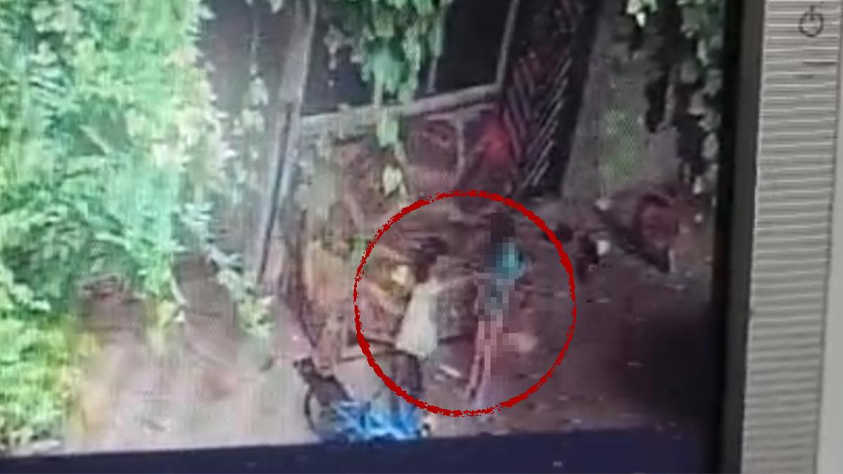 Öte yandan, çocuğun evin etrafında oynadığı anlar, güvenlik kamerasıyla görüntülendi.
