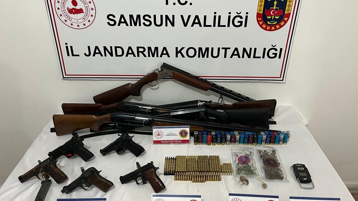 İl Jandarma Komutanlığı ekipleri, Salıpazarı ilçesinde S.K, A.K. ve N.Ş'nin ruhsatsız silah bulundurduğu ve uyuşturucu madde ticareti yaptığı yönündeki istihbarat üzerine çalışma yürüttü.