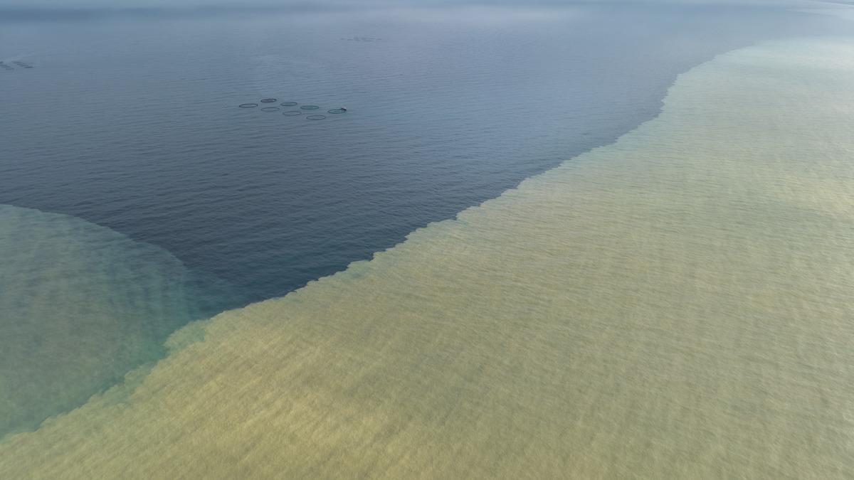 Dronla kaydedilen görüntülerde, denizde mavi ile kahverengi arasındaki renk ayrımı net şekilde görüldü.