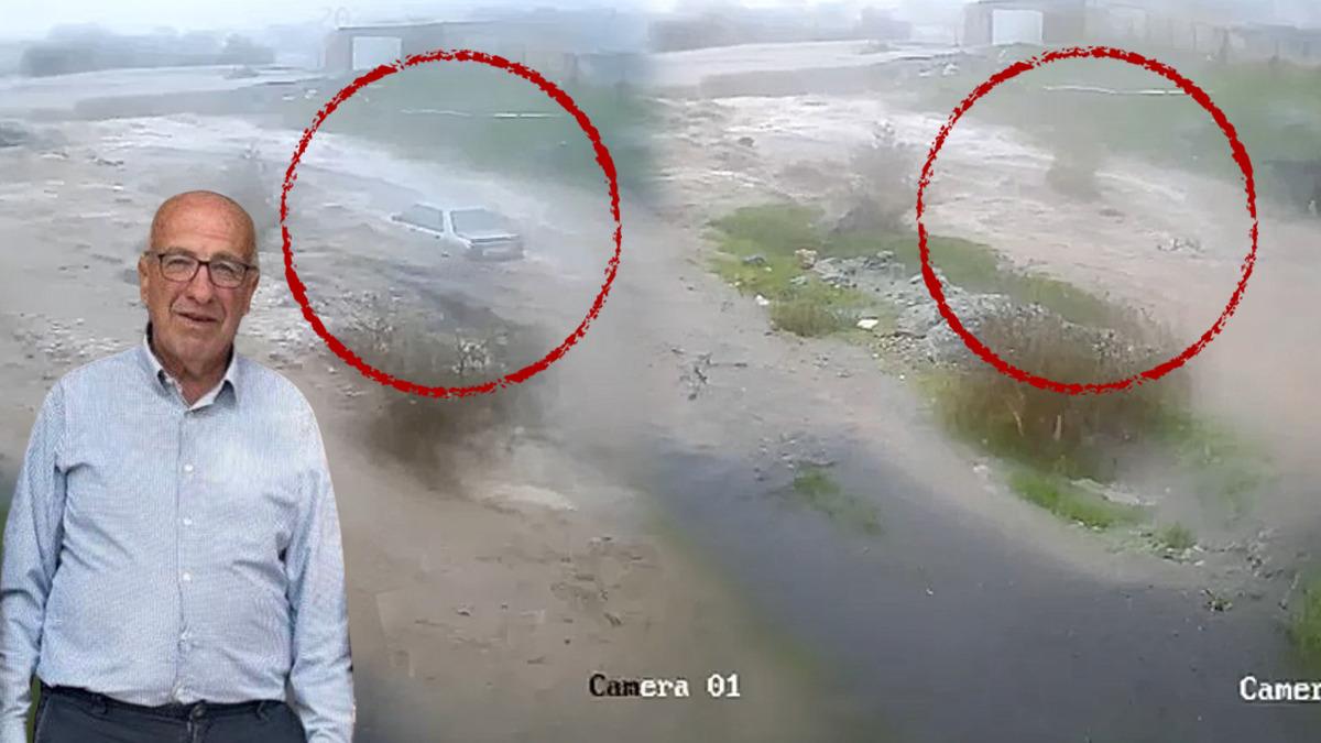 İzmir'in Foça ilçesinde, Bülent Kaptanoğlu'nun otomobiliyle sel sularına kapıldığı anların görüntüsü ortaya çıktı. Çevredeki iş yerinin güvenlik kamerasına yansıyan görüntüde, Kaptanoğlu'nun sel suları içinde düşe kalka ilerlemeye çalışması ve otomobilinin sürüklenmesi yer alıyor.