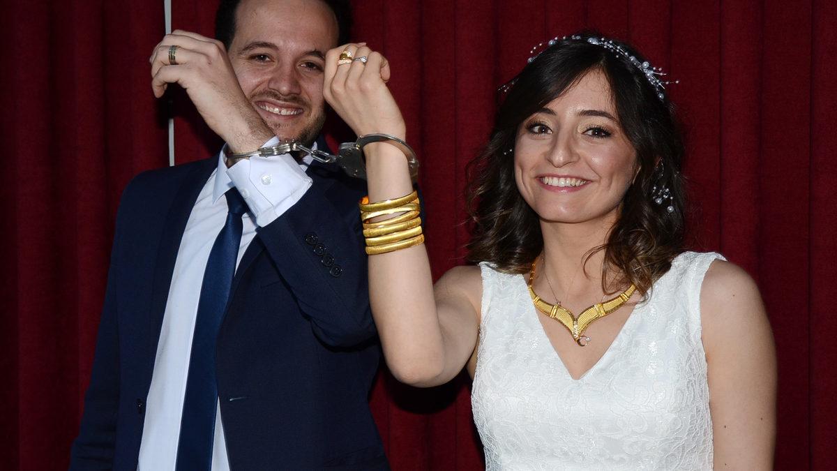 Namık Kemal KILINÇ/SERİK (Antalya), (DHA) - ANTALYA'nın Serik ilçesinde görev yapan polis memurları Şerife Şeyda Önal (26) ile Gökhan Budak (26), Sevgililer Günü'nde evlendi. Nikahın ardından arkadaşları çifte kelepçe takıp, mutluluk diledi.