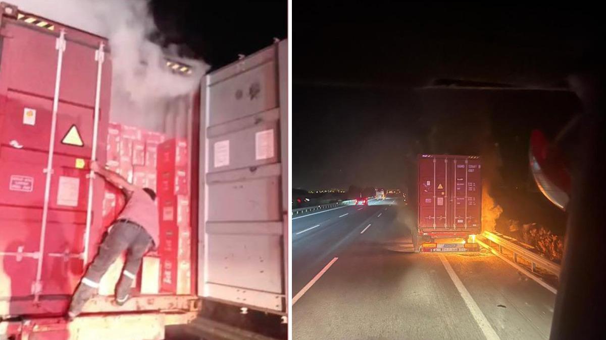 Aracını emniyet şeridine çeken sürücünün durumu bildirilmesi üzerine olay yerine itfaiye ve jandarma ekipleri sevk edildi. Olay yerine gelen itfaiye ekiplerinin müdahalesiyle yangın kontrol altına alınarak söndürüldü. Yangında dorsenin bir kısmı zarar görürken, tır sürücüsünün dorsedeki makarnaları dışarı atarak zararı en aza indirmeye çalıştı.