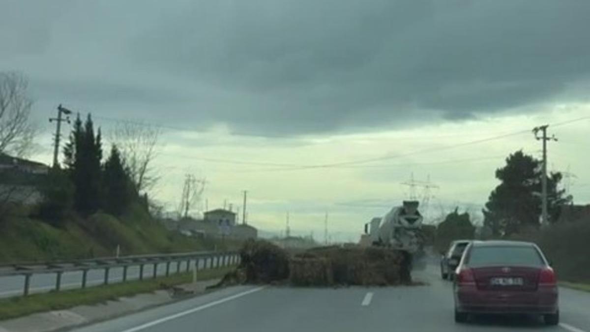 İhbar üzerine bölgeye sevk edilen ekipler, yola dökülen saman balyalarını kaldırarak yolu yeniden trafiğe açtı. Olayda herhangi bir kazanın yaşanmaması muhtemel bir faciayı önledi. Yola dökülen saman balyaları cep telefonu kamerasına yansıdı.