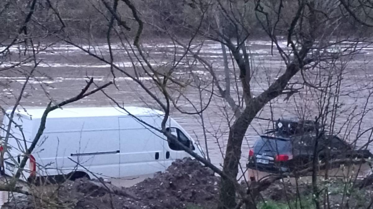 Yıldız Mahallesi mevkisinde minibüsle ilerleyen 2 kişi, Simav Çayı'nın debisinin yükselmesiyle araç içinde mahsur kaldı.