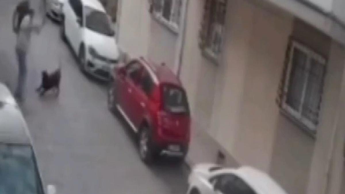 Olay, bugün Balçova'da meydana geldi. Sokakta yürüyen iki kişiden biri, belinden kemerini çıkardı ve yanına yaklaşan hayvana vurdu. O anlar sokaktaki güvenlik kamerasına da yansıdı.